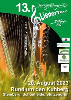 zur 13. Erzgebirgischen LiederTour rund um den Kuhberg. Wir sind zu Gast in der Bürstenregion zwischen Steinberg, Schönheide und Stützengrün. Seien Sie dabei, wenn sich das Erzgebirge von seiner schönsten Seite zeigt. Genießen Sie einmalige erzgebirgische Natur und Musik. Von 10:00 bis 17:00 Uhr sind alle Stationen mit unseren Musikanten besetzt. Jeder kann in individueller Reihenfolge beliebig viele Stationen besuchen. Das Abschlusskonzert findet um 18:00 Uhr am Hotel Forstmeister, Schönheide statt.