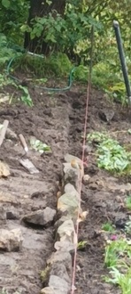 In einem weiteren Einsatz haben sich unsere ehrenamtlichen „Profis“ dann die Abgrenzung des neuen Beetes vorgenommen. Vielleicht hätte es die „Urgesteine“ der Anlage gefreut, dass dafür „historisches“ Material, also schon dereinst verbaute Sandsteine, wiederverwendet wurden. Am Ende steht nun wieder eine optisch passende Beetabgrenzung: Zugang zu den neuen Blütenpflanzen ab jetzt nur für Bestäuber-Insekten und Beetpflegende J.