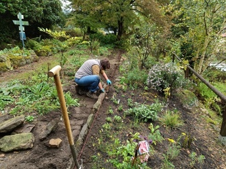O’pflanzt is! Endlich ging im sogenannten Quartier „Bauerngarten“ unseres Pflanzengartens, gelegen auf der weniger sonnenexponierten Westseite die Umgestaltung voran. Nachdem im Vormonat der Untergrund für eine neue Beetfläche vorbereitet werden konnte, ging es nun in den letzten sonnigen Septembertagen und nach gut vorbereitendem Regen ganz schnell: ja, es waren halt mal „Profis bei der Arbeit“. Die eigentlich in Pillnitz hauptberuflich ausbilderisch tätigen Gärtnerinnen Katrin Bieselt und Kerstin König konnten dank … Budget in der regional … „Staudenpalette“, der ehemaligen Staudengärtnerei Lux in Graupa, eine tatsächlich bunte und vielfältige Palette an insektenfreundlichen und trockenheitstoleranten Blühpflanzen erwerben, und haben diese auch in Eigenregie nach Stadt Wehlen transportiert.