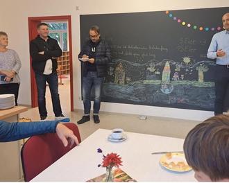 Uns freute die Anwesenheit von Bürgermeisterin Frau Großmann sowie ihrem Stellvertreter und Fußballvereinsvorsitzenden Herrn Andrä. Auch freuten sich die Kinder selbstgebackene Waffeln und Kuchen an die Mitglieder aus dem Beirat, Herrn Wenzel und Herrn Hegewald, zu verteilen und natürlich auch an die Eltern, Großeltern und Geschwisterkinder vor Ort. Frau Gebhard, die sich extra im Namen des Montessori-Landesverbands Sachsen e.V. auf den Weg zu uns gemacht hat, überreichte mit wundervoller Symbolik einen „Flaschen Garten“, eine Art Mini-Gewächshaus, und reichlich Bastel-Material.