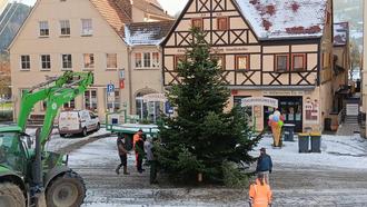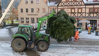 Die Bauhofmitarbeiter haben die Bäume aufgestellt und sind auf dem Markt wieder von Heiko Jensch und dessen Technik unterstützt worden.