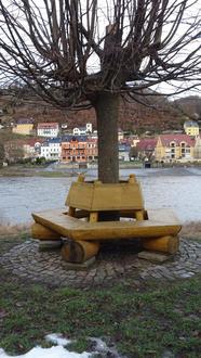 Viele kennen die am Parkplatz Saarstraße im OT Pötzscha aufgestellte Rundbank. Malerisch an unserer Elbe gelegen, erfreute sie unsere Gäste wie auch unsere Einwohner jahrelang. An vielen Dingen nagt der Zahn der Zeit, und so mussten wir dieses Kleinod leider aus Sicherheitsgründen im vergangenen Jahr niederlegen.
