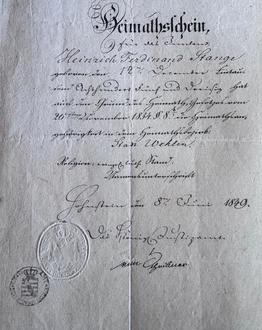 Dieser Blick verrät uns, dass es mit den Einwohnerangelegenheiten schon damals ganz schön genau genommen wurde. So konnte z. B. nicht jeder Bürger mal schnell irgendwohin ziehen. Dazu benötigte man nämlich einen sogenannten „Verhaltschein“, oder auch Heimatschein, Ausweis zur Aufenthaltsberechtigung genannt. Das heißt jeder umzugswillige Bürger musste ein Zeugnis von seinem bisherigen Aufenthaltsort vorlegen, welcher ein untadeliges Verhalten vorweisen musste.