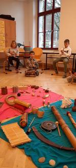 Mit dem Kurs „Welt der Klänge“ begeisterte Herr Hannes Heyne, Dipl. Hydrologe, Klangforscher, Musikpädagoge und Inhaber der Klanghütte Weinböhla, die zweite bis vierte Klasse Anfang März. Vom Ursprung der Klänge aus der Natur bis hin zu den traditionellen Musikinstrumenten aller Welt - von Europa bis zur Spitze Afrika, von Amerika bis Australien und Asien erkundeten die Kinder verschiedene Klangwelten. Mit Hörspaziergängen und Improvisationen konnten „im Museum zum Berühren und Spielen“ alle Beteiligte die Sinne bewusst entdecken. Mit dieser Erfahrung erhielten die Akteure einen kleinen Einblick in die Kultur anderer Länder. „Können wir das nochmal machen? Wann kommen Sie wieder?“ endete mit Begeisterung diese musikalische Reise. Wir danken Herrn Heyne für diese wunderbare Erfahrung.