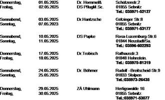 Bereitschaftsdienst I. Halbjahr 2025 der Zahnärzte für den Notdienstbereich Sebnitz und Neustadt/Sa.