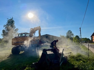 Mit viel Tatkraft der Mitarbeiter des Bauhofs, von kräftigen Männern aus Uttewalde und starken Maschinen wurden alle Elemente des alten Spielplatzes abgebaut: