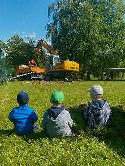 Alles wird natürlich beobachtet von leuchtenden Kinderaugen, Mamas und Omas, die sich schon auf den neuen Spielplatz freuen: