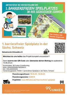 Der Umbau des alten Spielplatzes hat begonnen – und wir brauchen deine Unterstützung! Schon seit eineinhalb Jahren arbeiten wir an der Idee, unseren Spielplatz in Uttewalde neu zu gestalten und in einen barrierefreien Treffpunkt für Jung und Alt zu verwandeln. Dank zahlreicher Spenden und erfolgreicher Wettbewerbsteilnahmen konnten wir bereits viel erreichen und erste Maßnahmen umsetzen.