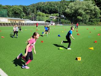 Am Freitag, dem 13.06.2025, durfte die Klasse 3 unserer Grundschule einen tollen Vormittag mit dem Fußballmobile des DFB auf dem Sportplatz erleben. Geschicklichkeit und Schnelligkeit wurden großgeschrieben. Besonders Spaß machte es allen, liegende Kegel mit dem Po oder dem Ohr aufzustellen. Zum Abschluss zeigten die Kinder Fairplay bei einem kleinen Turnier. Das gemeinsame Aufräumen ging sehr zügig, so dass wir den bestehenden zeitlichen Rekord unterbieten konnten.