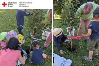 Die Kita Elbkinderland in Stadt Wehlen möchte sich herzlich für die großzügige Spende eines Apfelbaumes bedanken, den unsere Partnerstadt Wehlen/Mosel der Stadt Wehlen und dem Heimatverein geschenkt hat. Wir schätzen die Idee des Bürgermeisters und des Vorstandes sehr, diesen Baum in unserem Kita-Garten zu pflanzen.