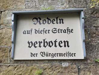 Dieses Schild ist immerhin eine Betrachtung und Erwähnung wert. Es stammt aus der Zeit, als Stadt Wehlen eine „offizielle“ Rodelbahn hatte und diese war sogar beleuchtet. Ein offizielles Rodeln fand natürlich nicht auf dem Schreiberberg statt, sondern es wurde auf dem Heimweg einfach nicht gelaufen - man hatte ja einen Schlitten dabei - also vorzugsweise zwischen dem Sportplatz und dem Städtchen gerodelt. die Rodelbahn befand sich in einem Seitental am oberen Ende des Sportplatzes. Start war oben am heutigen Parkplatz, Abzweig Schöne Aussicht, und das Ziel war unten am heutigen Kleinfeldplatz. Also sah sich der Bürgermeister genötigt, dieses Verbotsschild aufzuhängen. Die Mauer, an welcher das Schild hängt, gehört zu "Kunath'schen Gut" und dieses wiederum war städtisch.