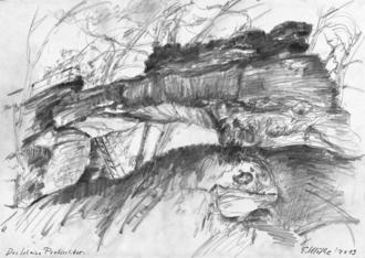 Die ersten Begegnungen mit der eindrucksvollen Landschaft des Elbsandsteingebirges hatte ich bereits schon als Schüler. Dia Vorträge des Klassenlehrers über die so genannte Sächsisch- Böhmische Schweiz, Schul-Wandertage, Urlaub mit Eltern und Bruder sowie später dann die vielen Reisen mit Frau und Sohn hatten zur Folge, dass Vielfalt und Eigentümlichkeit dieses Landstrichs bis in die Gegenwart mit starker Anziehungskraft auf mich wirken. Bei den Erkundungen oder Ausflügen aller Art, mit Zeichen- und Malutensilien im Gepäck, entstehen Skizzen, Zeichnungen, Couachen und Pastelle. Impulse zu meinen künstlerischen Formulierungen sind naturgeschichtliche und kulturgeschichtliche Aspekte.