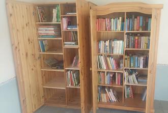 Dreiviertel der Arbeiten sind beim Einrichten der „Buchhaltestelle“ abgeschlossen. Dazu gehören die Malerarbeiten im Innenbereich, das Versorgen, Aufstellen und Einbringen der Böden der Schränke sowie das Decken des Daches. Hier haben unsere Arbeiter vom Bauhof Heiko und Stefan solide Arbeit geleistet. Allen bisher beteiligt möchte der Vorstand des Heimatvereines recht herzlich danken. Viele interessante Bücher können jetzt vom neugierigen Leser ausgesucht werden.