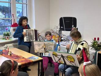 Pünktlich um 16:00 Uhr eröffneten Jutta Rößler sowie Henriette Rößler und Marianne Kaspar musikalisch den Weihnachtsmarkt am 25.11.2023 in Libehna.