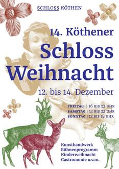 Die Köthener Schlossweihnacht wird am 12. Dezember um 17 Uhr von der Oberbürgermeisterin und vom Weihnachtsmann mit dem traditionellen Stollenanschnitt eröffnet, gemeinsam wird der Weihnachtsbaum angeblasen und natürlich lässt sich auch der Weihnachtsmann das Spektakel nicht entgehen. Am 13. Dezember kann die Schlossweihnacht von 12 bis 23 Uhr und am 14. Dezember von 12 bis 18 Uhr besucht werden. Das Bühnenprogramm ist unter www.schlosskoethen.de veröffentlicht.