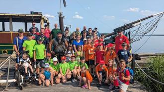 Gegen 15.00 Uhr erwartete hier die Mannschaft des „Piraten- Schiffes Reudnitz“ unsere Wandergruppe zu einer zünftigen Rundfahrt auf dem Goitzsche-See.