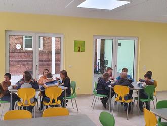Die Kinder der Grundschule „Käthe Kollwitz“ in Quellendorf können seit Januar das neue Mehrzweckgebäude nutzen. Nach einer Bauzeit von nicht einmal 10 Monaten (Anfang März bis Mitte Dezember 2023) können die Schülerinnen und Schüler nunmehr ihr Mittagessen in einem großen hellen und freundlichen Raum zu sich nehmen. In dem Neubau befinden sich außerdem eine Küche mit Essensausgabe und ein Technikraum. Das Gebäude bietet den Lehrerinnen und Hortnerinnen zukünftig auch die Möglichkeit, weitere Aktivitäten mit den Kindern durchzuführen. So kann der Raum u. a. für Projekte, Informationsveranstaltungen oder auch die Erledigung der Hausaufgaben genutzt werden.