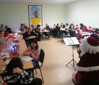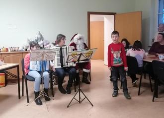 Am zweiten Adventswochenende, am Samstag, dem 07.12.2024, fand die erste Weihnachtsfeier der Bastelkinder des Bürgervereins zur Alten Mühle Libehna e.V. statt. Viele Eltern und Großeltern sind der Einladung der nunmehr 22 Kinder gefolgt und brachten viele Leckereien mit. Die zwei langen Tische reichten nicht aus, um die ganzen Kuchen und Plätzchen unterzubringen. Mit leckerem Kinderpunsch und Kakao war die Verpflegung bestens sichergestellt. Eines der Highlights war das gemeinsame Singen von Weihnachtsliedern mit musikalischer Unterstützung von Henriette Rößler und Marianne Kasper, auf dem Akkordeon. Der Weihnachtsmann kam vorbei und brachte jedem Kind eine süße Überraschung mit. Als erstes Kind stand Paul Buchheim auf und trug uns ein schönes Weihnachtsgedicht vor.