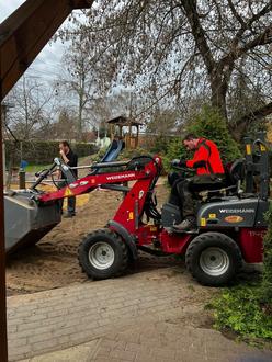 Ein großes Dankeschön an Firma Garten- und Landschaftsbau Heilemann für das Schneiden der Hecke. Ebenso bedanken wir uns beim Pferdehof Hildebrand für die Bereitstellung des Radladers, mit welchem der viele Sand an Ort und Stelle gebracht wurde. Der Sand wurde von Firma Zabel Schweiß- und Gasetechnik GmbH gesponsert, auch hierfür ein herzliches Dankeschön. Dachdeckermeister Steven Broschinski & Carsten Rautenkranz von C.R. Industry haben für die Kita Erde für die Beete besorgt, dafür sagen wir ebenso Dankeschön! Natürlich sagen wir auch „Danke“ zu all den fleißigen Eltern, bedanken uns bei Eltern, die nicht dabei sein konnten aber dafür Geldspenden oder schöne Blumen vorbeigebracht haben.