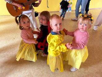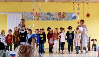In der Kindertagesstätte „Sonnenschein“ in Quellendorf machten sich nicht nur die Hasen bereit, auch die Igel und Frösche, die Waschbären, Mäuse und Küken, alle Gruppen der Einrichtung wuselten Wochen lang durch ihre Gruppenräume. Sie übten tanzend und singend, um dann zum Osterfest im Dorfgemeinschaftshaus alles geben zu können, am großen Tag, wenn alle nur sie bestaunen. In diesem Jahr war die ganze Familie eingeladen, Omas und Opas, Mamas und Papas, sowie reichlich Geschwisterkinder jeden Alters füllten den Saal. An jedem Tag der Woche war eine Gruppe der Einrichtung dran und die Kinder konnten ihr einstudiertes Programm zur großen Freude aller Gäste aufführen. Diese saßen an liebevoll hergerichteten Tischen und staunten nicht schlecht über Gesangs- und Schauspielkunst der Krippen- und Kindergartenkinder. Viele Eltern und Großeltern hatten sich bereit erklärt und haben fleißig gebacken. So war bei Kaffee und roter Brause auch für das leibliche Wohl gesorgt. Ein großes Dankeschön an die fleißigen Bäcker. Es stand jeden Tag ein herrliches Kuchenbuffet bereit, was an Auswahl und Vielfalt nicht zu übertreffen war. Es ist doch immer wieder schön, dass das so klappt und sich alle einbringen. Nach dem Programm und dem gemeinsamen Kaffeetrinken hatte doch dann tatsächlich auch der Osterhase noch seinen Job mit Bravour erledigt und für jedes Kind ein Osternest versteckt. Die Bäuche gefüllt, die Augen strahlend, die Herzen lachend vor so viel Kinderglück ging jeden Tag aufs Neue eine andere Kita-Gruppe selig nach Hause.