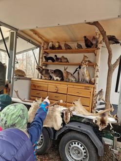Die Vorschulgruppe der Kita hatte vor einigen Wochen noch ein Erlebnis besonderer Art. Ein Jäger der Jägerschaft Bitterfeld kam mit dem Umweltmobil des Landesjagdverbandes in den Wald, um den Kindern viel Wissenswertes rund um den Jägerberuf und den Wald mit all seinen Tieren zu vermitteln. Da durften viele Tierpräparate bestaunt, Felle befühlt und Trittsiegel in Augenschein genommen werden. Die Kinder durften fragen was das Zeug hält, konnten mit schon einem großen Wissen punkten und auch einmal feine Dame mit einer echten Fuchsstola spielen. Auch dem Bewegungsdrang wurde genüge getan, so spielten die Vorschüler Eichhörnchen und versteckten Eicheln und Kastanien im Wald, um diese nach einem kurzen Winterschlaf dann auch wieder zu finden. Viele Informationen altersgerecht verpackt! Ein großes Dankeschön an Herrn Kasch, der die Kinder wie auch die Erzieherinnen begeistert hat.