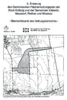 Der Gemeinsame Flächennutzungsplan der Stadt Gröbzig und der Gemeinden Edderitz, Maasdorf, Piethen und Wieskau muss gem. § 1 Abs. 4 BauGB an die Ziele der Raumordnung angepasst werden. Darüber hinaus werden die Grenzen des Eignungsgebietes konkretisiert und somit eine Ausschlusswirkung für WEA außerhalb des Eignungsgebietes erreicht.