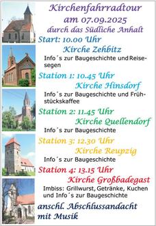 Die Kirchengemeinden des Südlichen Anhalts laden herzlich zur Radtour durch einige Kirchen der Stadt ein.