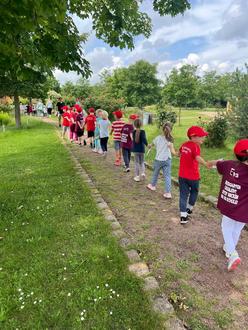 Mit Spannung und Vorfreude begaben sich die Kinder auf die Suche nach den versteckten Schatzkisten. Unter Anfeuerungsrufen und mit viel Eifer durchstreiften sie das Gelände, bis sie schließlich fündig wurden. Der Jubel war groß, als die Schatzkisten geöffnet wurden und jede Menge kleine Zuckertüten zum Vorschein kamen – eine süße Belohnung für einen ereignisreichen Tag.