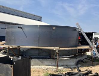 Der Pufferspeicher wurde bereits auf das Gelände der Heizzentrale geliefert und befindet sich derzeit im Bau. Er spielt eine zentrale Rolle für die Stabilität der Wärmeversorgung: