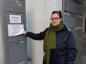 Das Team der Zensus-Erhebungsstelle in Weißenfels packte die Sachen. Leiterin Annekatrin Schinol entfernte das Zensus-Schild am Briefkasten des Fürstenhauses. (Bildquelle: Katharina Vokoun/Stadt Weißenfels)