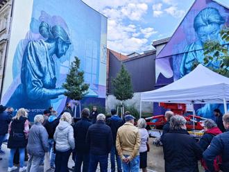 Feierliche Übergabe der beiden Fassaden-Gemälde an der Ecke Saalstraße/Große Kalandstraße. (Bildquelle: Antje Riewe-Bez)