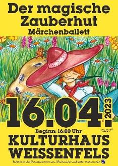 | Bild 22 | Kulturhaus, Merseburger Straße 14, 06667 Weißenfels 16.04.2023, 16:00 Uhr Der magische Zauberhut - Ein Märchenballett über die Abenteuer des Pumpot Pumpot ist eine der bekanntesten und beliebtesten sorbischen Sagenfiguren, da er ähnlich Till Eulenspiegel mit seinen lustigen Streichen für allerlei Turbulenzen sorgt. In fünf Bildern erzählt das Märchenballett „Die Abenteuer des Pumpot“ die Geschichte des pfiffigen Müllerburschen mit seinem spitzen, breitkrempigen Zauberhut, von seiner Flucht vor dem habgierigen Müller und dessen Drachen und von den Begegnungen mit der schönen und strengen Mittagsfrau, den Irrlichtern und anderen Gestalten der sorbischen Sagenwelt auf seiner spannenden Wanderschaft durch die Lausitz. Geeignet für Kinder ab 5 Jahren. |
