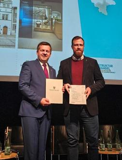 Ministerpräsident Sven Schulze (l.) überreichte den Fördermittelbescheid für das Heinrich-Schütz-Haus an den Weißenfelser Oberbürgermeister Martin Papke. (Bildquelle: Stadt Weißenfels)