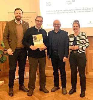Freuten sich über den Fördermittelbescheid (v.l.n.r.): Oberbürgermeister Martin Papke, Markwerbener Ortsbürgermeister Hubert Schiller, Vorsitzender der Lokalen Aktionsgruppe Montanregion Sachsen-Anhalt e.V. Andy Haugk und Landtagsabgeordnete Elke Simon-Kuch. (Bildquelle: Stadt Weißenfels)
