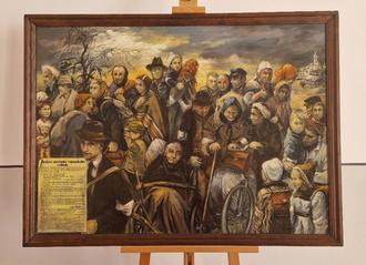 „Zug der Vertriebenen“ ist der Titel des zweiten Kunstwerks, übergeben wurde es von Regina Köberle. Das 116 Zentimeter breite und 86 Zentimeter hohe Ölgemälde erinnert an die Geschehnisse nach dem Ende des Zweiten Weltkriegs auf dem Gebiet der damaligen Tschechoslowakei. „Mein Vater wurde 1931 in dem böhmischen Grenzdorf Görsdorf im damaligen Kreis Reichenberg geboren“, sagte Matthias Schreier bei der Übergabe. „Er kam im Spätsommer 1945 nach Merseburg und 1956 nach Weißenfels.“