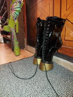 Ein bisschen Mut gehört allerdings dazu – wer in diesen Schuhen laufen möchte, sollte sich sicherheitshalber noch eine Stütze suchen. (Bildquelle: Anke Fey/Stadt Weißenfels)