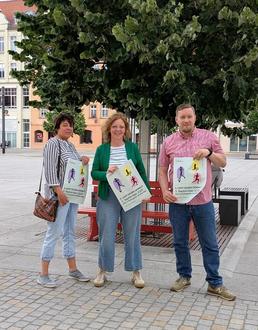 Setzen mit dem 4. Weißenfelser „Lauf gegen Gewalt“ ein Zeichen gegen häusliche Gewalt: Birgit Peterz (Leiterin Frauenhaus Weißenfels), Katja Henze (Gleichstellungsbeauftragte Stadt Weißenfels) und Christian Endt (Kulturamtsleiter Stadt Weißenfels, v.l.n.r.). (Bildquelle: Katharina Vokoun/ Stadt Weißenfels)