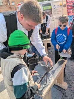 Am Stand von Dachdecker Jens-Norbert Schmidt konnten die Kinder aus Schieferplatten kleine Deko-Herzen herstellen. (Bildquelle: Katharina Vokoun/ Stadt Weißenfels)