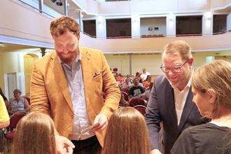 Zur Abschlussveranstaltung im Kulturhaus waren neben den Kindern auch ihre Familien eingeladen. Ein besonderer Ehrengast war der Oberbürgermeister der Weißenfelser Partnerstadt Kornwestheim, Nico Lauxmann. Zusammen mit Oberbürgermeister Martin Papke überreichte er die Urkunden an die erfolgreichen Leserinnen und Leser.