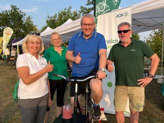 Auch die AOK Sachsen-Anhalt war wieder stark vertreten. Cornelia Schulz, Landesrepräsentantin der AOK Sachsen-Anhalt, betonte: „Ich fand die Spendenbereitschaft einfach großartig! Und die Stimmung war insgesamt so positiv, denn alle Beteiligten wussten ja, dass für einen guten Zweck gesammelt wurde. Es hat ja schon fast Tradition, dass der Landrat sich auf dem Smoothie-Bike eine gesunde Erfrischung bereitet.“