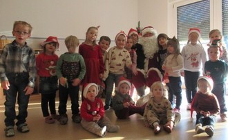 Am 17. Dezember feierten wir schließlich unsere Weihnachtsfeier im Kindergarten, die mit einem großen, leckeren Frühstück begann. Danach besuchte uns der Weihnachtsmann höchstpersönlich, der von den Kindern bereits freudig erwartet wurde! Bevor die vielen Geschenke verteilt wurden, trugen die Kinder gelernte Lieder und Gedichte vor. Ein aufregender und schöner Tag für alle! Auch hier bedanken wir uns herzlich bei den Eltern für die tatkräftige Unterstützung in vielerlei Hinsicht & das große Engagement.