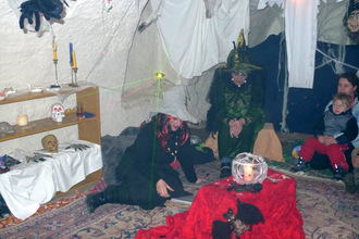 Knüppelkuchen am Lagerfeuer, Würstchen, Zuckerwatte, Getränke, Basteln und Gruselgeschichten und Geistertreiben im Hexenkeller und im Hof.