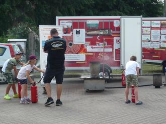 Ein weiteres Mal kamen wir bei der Mahliser Feuerwehr mit Blaulicht in Berührung. Zu Fuß in Mahlis angekommen wurden wir von den Feuerwehrmännern und –frauen ganz herzlich begrüßt. Eine Hüpfburg und viele interessante Spiele und Experimente waren vorbereitet und wurden von den Kindern dankend gern angenommen. Auch ein leckeres Mittagessen war vorbereitet und danach gab`s für jeden ein Eis vom Bauernhof Oehmichen. Wem das immer noch nicht erfrischend genug war, der konnte in den Pool springen.