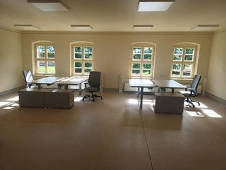 Der Schwerpunkt des städtebaulichen Entwicklungskonzeptes „Um das Jagdschloss“ liegt in der Anpassung der öffentlichen Infrastruktur an künftige Nutzungsbedürfnisse. Im Rahmen der Umsetzung dieses Konzeptes wurde der Westflügel des Alten Jagdschlosses umfangreich saniert. Mit der Grundidee neues Leben im Alten Schloss wurden im vakanten Teil des Alten Jagdschlosses Möglichkeiten für Coworking Spaces, Senioren- und Vereinstreffs sowie für wechselnde Kunstausstellungen geschaffen, erläuterte Bürgermeister Matthias Müller während eines Rundganges durch den Westflügel.