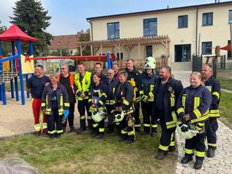 Die Freiwillige Feuerwehr führt regelmäßige Übungen an verschiedenen Standorten in der Gemeinde durch, um im Ernstfall entsprechend sicher handeln zu können. Dieses Mal stand die Mahliser Kita auf dem Plan. Aus sicherer Entfernung verfolgten die Kinder gespannt die Arbeit der Feuerwehrmänner und -frauen. Als dann noch der Wermsdorfer Rettungswagen um die Ecke bog, leuchteten die Kinderaugen noch größer. Jeder durfte einmal einen Blick ins Innere werfen und sich hinter das Steuer setzen. Ein aufregender Tag für alle!