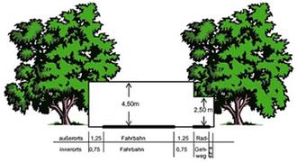 Das erforderliche Lichtraumprofil sollte von allen Grundstückseigentümern überprüft und eingehalten werden. Dies beträgt in der Regel eine Höhe von 2,50 m über Geh- und Radwegen und 4,50 m an Straßen und Wegen. Bei Anpflanzung von Hecken und Sträucher an Straßen, Wegen und öffentlichen Plätzen sollte ein Mindestabstand von 0,75 m zum Straßenbereich eingehalten werden.