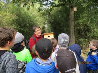 Bereits im März 2023 hatten die Kinder im Rahmen des Hortprojektes die Nistkästen im Wald aufgehängt und nun war es an der Zeit, ihre Ergebnisse zu überprüfen. Unter der fachkundigen Anleitung von Frau und Herrn Erdmann machten wir uns motiviert ans Werk.