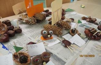 Die Mädchen und Jungen des Hortes Wermsdorf sammelten in ihren Herbstferien fleißig verschiedene Naturmaterialien. Aus Kastanien, Eicheln, Bucheckern, Zapfen, kleinen Stöckchen und Blättern entstanden mit geschickten Händen viele hübsche Kunstwerke, die die Kinder stolz mit nach Hause nehmen konnten.
