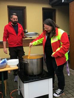 Schon beim Betreten des liebevoll geschmückten Geländes wurden die Besucher von einer gemütlichen Atmosphäre empfangen. Der Duft frisch gekochter Kürbissuppe – in diesem Jahr eine kulinarische Premiere – zog über den Hof, begleitet von dem warmen Aroma von Waffeln und heißen Getränken. Die Kinder konnten außerdem zwischen herzhaften Wienern oder einer der süßen Leckereien wählen.