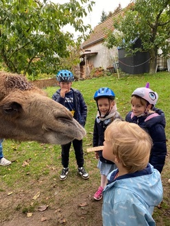 Ein Highlight war der Ausflug nach Schmannewitz, wo die Kinder echte Kamele hautnah erlebten und sogar reiten durften. Ein unvergessliches Erlebnis war die Fütterung der Tiere mit Knäckebrot aus dem Munde der Kinder. Im Bauernmuseum des Ortes tauchten die Entdecker in vergangene Zeiten ein und verfolgten interessiert den alten Filmen.